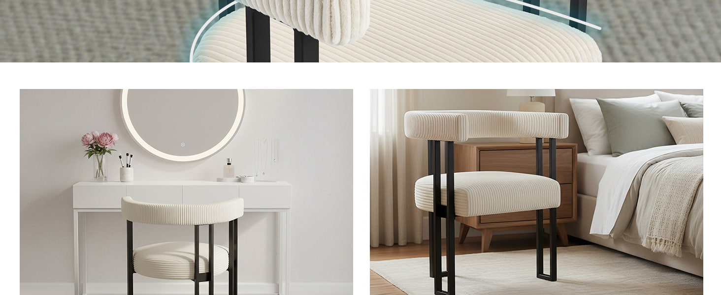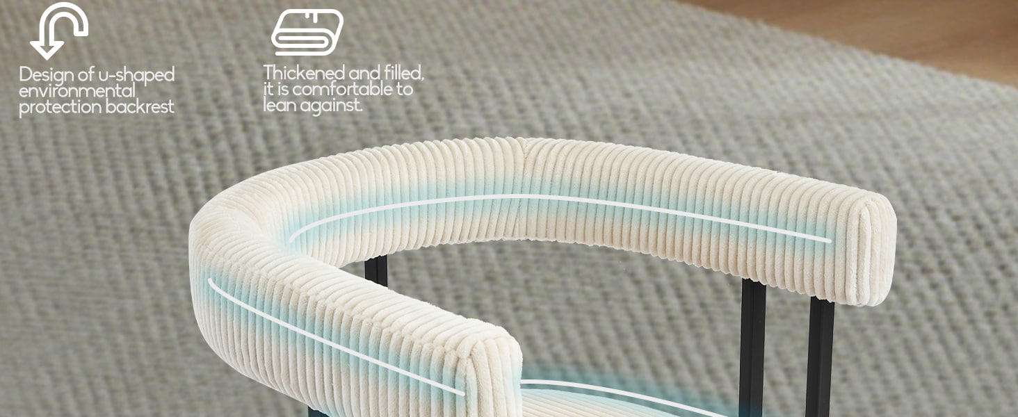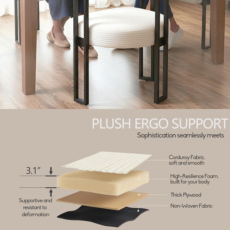 Ghế được làm bằng bọt có độ đàn hồi cao, duy trì hình dạng theo thời gian, mang lại sự hỗ trợ đáng tin cậy cho dù được sử dụng ở bàn ăn, bàn trang điểm hay bàn làm việc tại nhà. Tựa lưng hình chữ U được thiết kế tinh tế mang đến sự hỗ trợ công thái học cho vùng thắt lưng và lưng, giúp giảm mệt mỏi khi ngồi lâu.