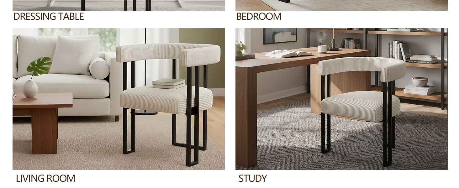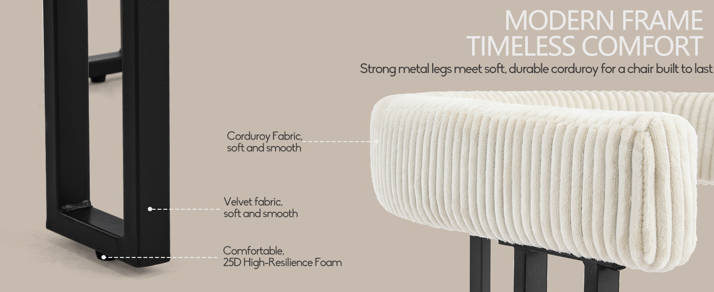 Được hỗ trợ bởi chân kim loại được phủ chắc chắn với miếng đệm chân chống trượt có thể điều chỉnh, chiếc ghế ăn này luôn ổn định đồng thời bảo vệ sàn nhà của bạn. Với hình dáng gọn gàng của phong cách giữa thế kỷ và tông màu trắng trung tính, nó dễ dàng kết hợp với phòng ăn, nhà bếp, phòng khách, phòng ngủ hoặc không gian học tập.