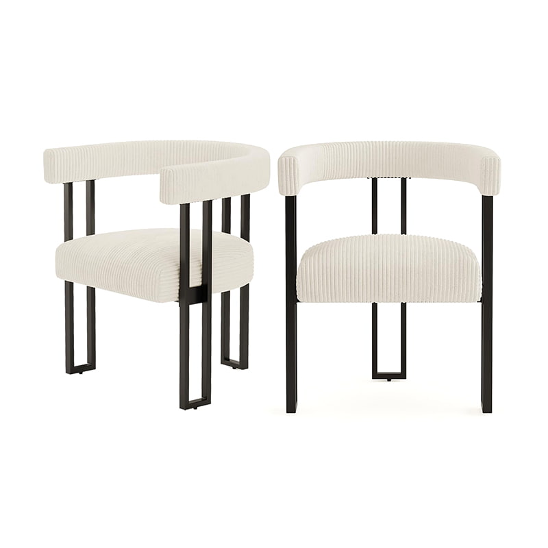 Ghế ăn Boucle, Ghế phòng ăn bọc vải nhung màu trắng có chân kim loại, Ghế Accent hiện đại giữa thế kỷ