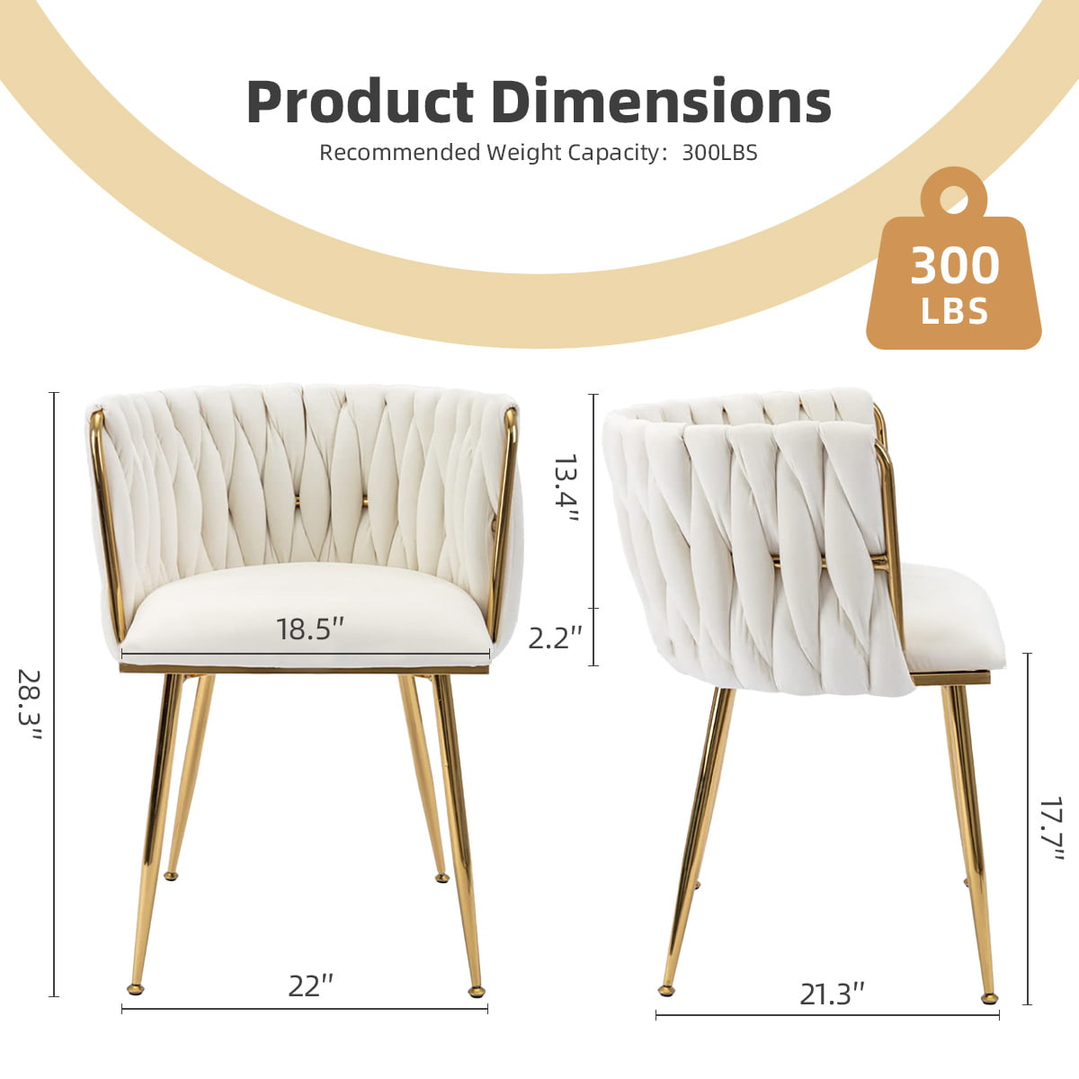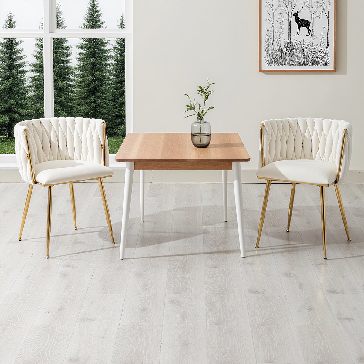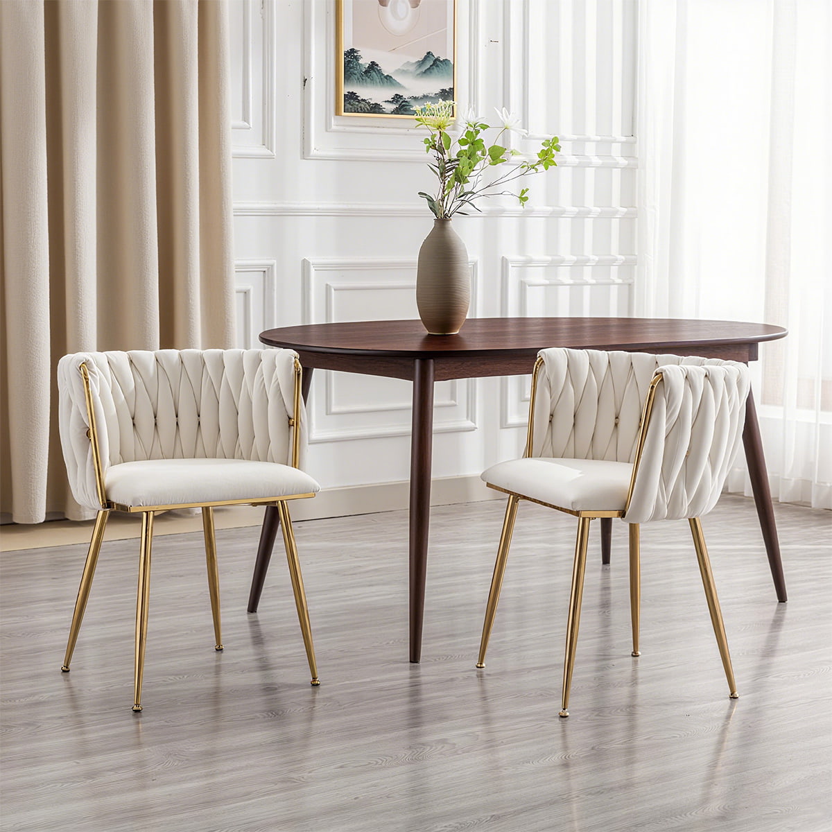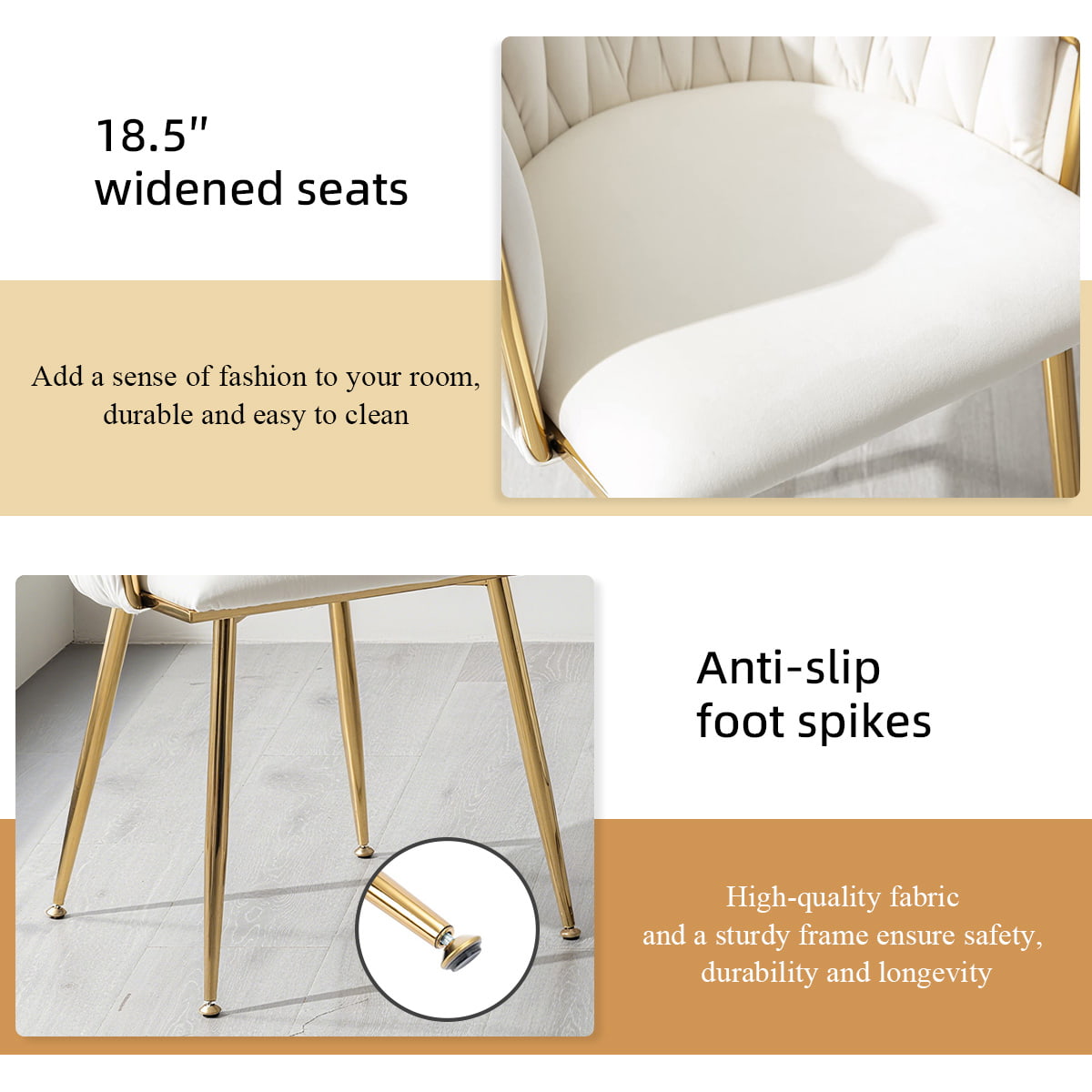 Ghế ăn bọc nhung màu ngà – Ghế tựa lưng dệt hiện đại với chân kim loại vàng, Ghế phụ giữa thế kỷ cho phòng ăn, phòng khách, nhà bếp hoặc bàn trang điểm
