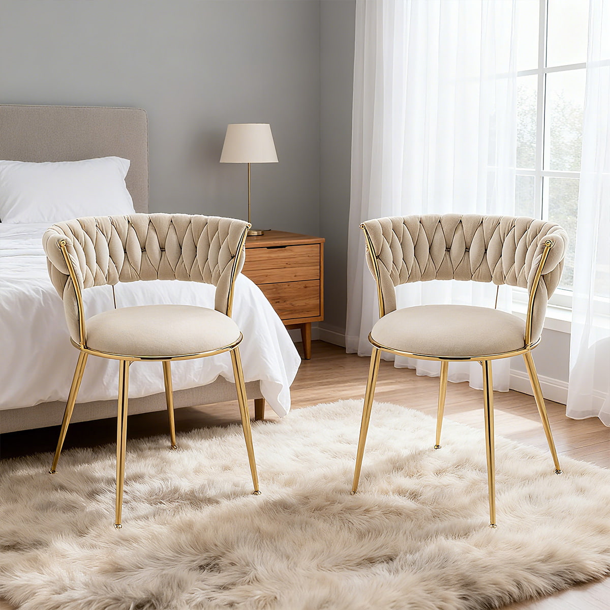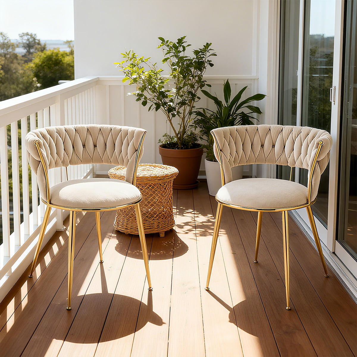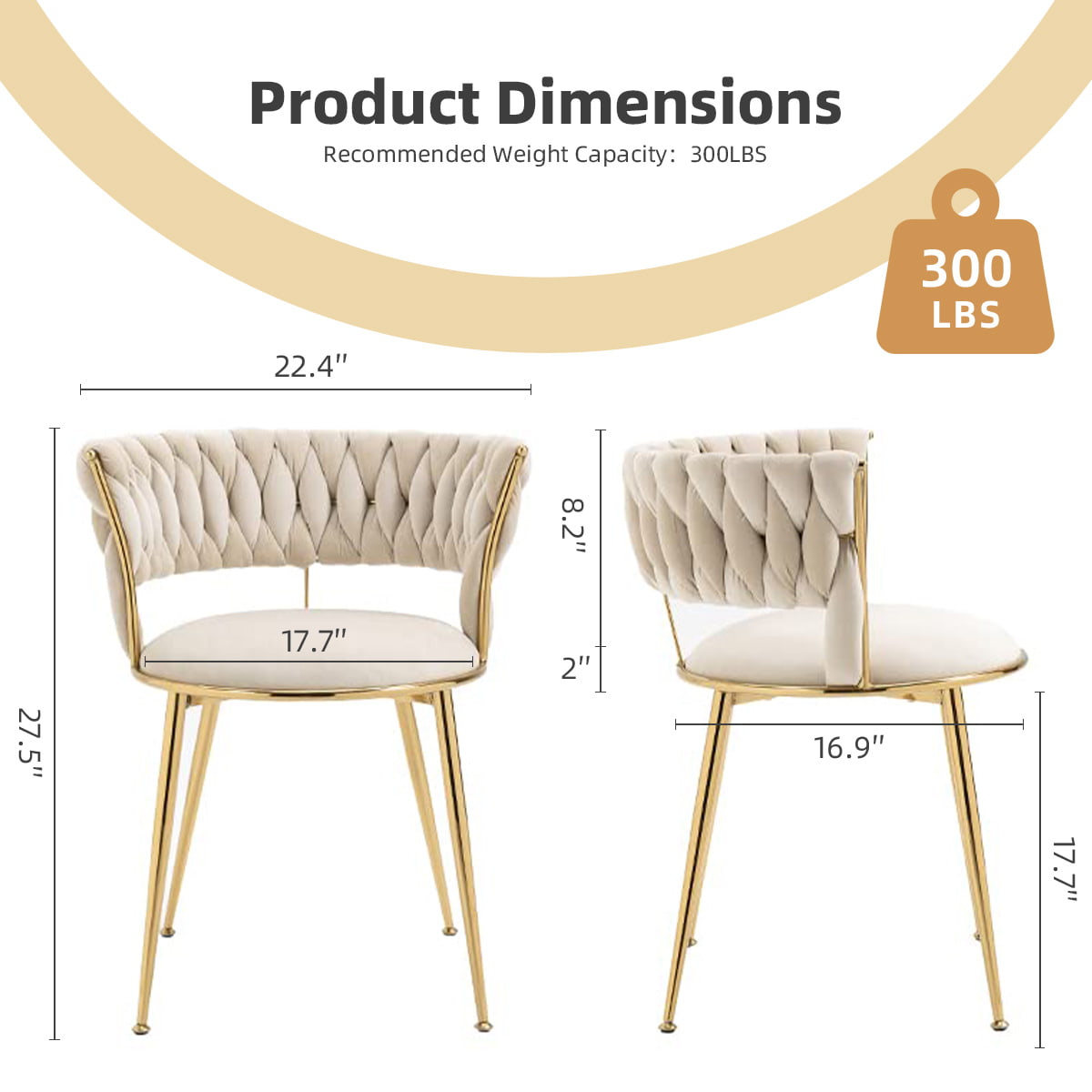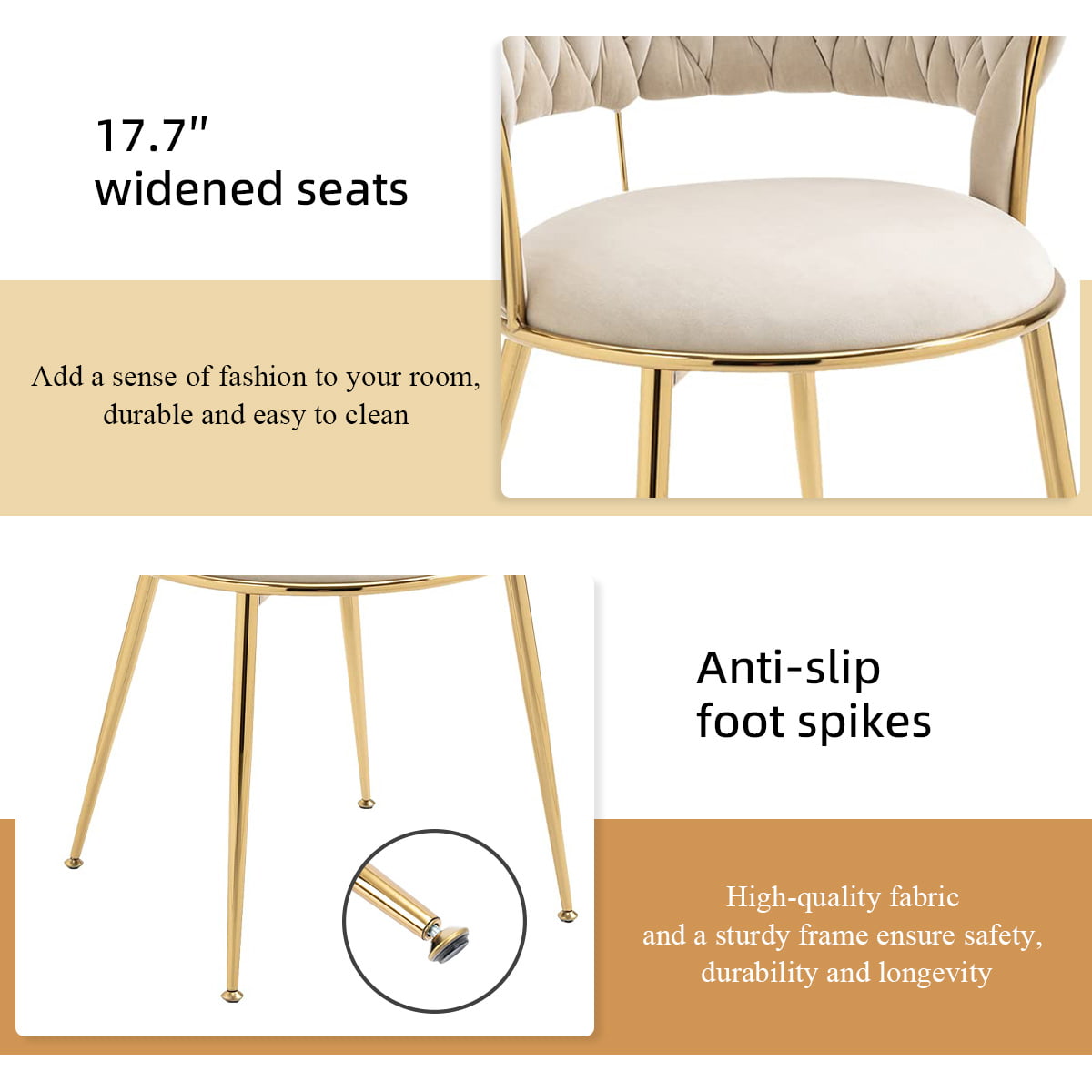 Ghế Ăn Nhung Ngà Hiện Đại Với Tựa Dệt & Chân Kim Loại Vàng – Ghế Bọc Da Thanh Lịch Cho Phòng Ăn, Nhà Bếp Hoặc Không Gian Sống